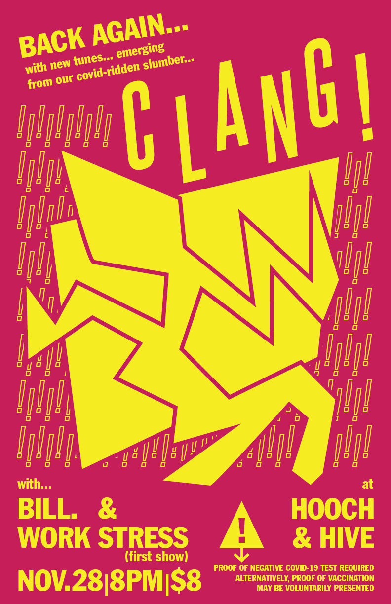 In addition to writing and performing music with the band Clang!, I also had the pleasure of creating dynamic rock show posters and graphics for them. I created the band’s logo, and created numerous posters for our exhilarating tours through the East Coast and Midwest, as well as for many local shows. I dedicated myself to crafting visually captivating designs that captured the essence of our music and performances. Drawing inspiration from punk bands of the past, I combined bold typography and striking illustrations to create posters that grabbed the attention of potential showgoers, and conveyed the atmosphere of our shows. It was incredibly fulfilling to contribute to the visual identity of Clang! and witness our posters adorning walls throughout the country.